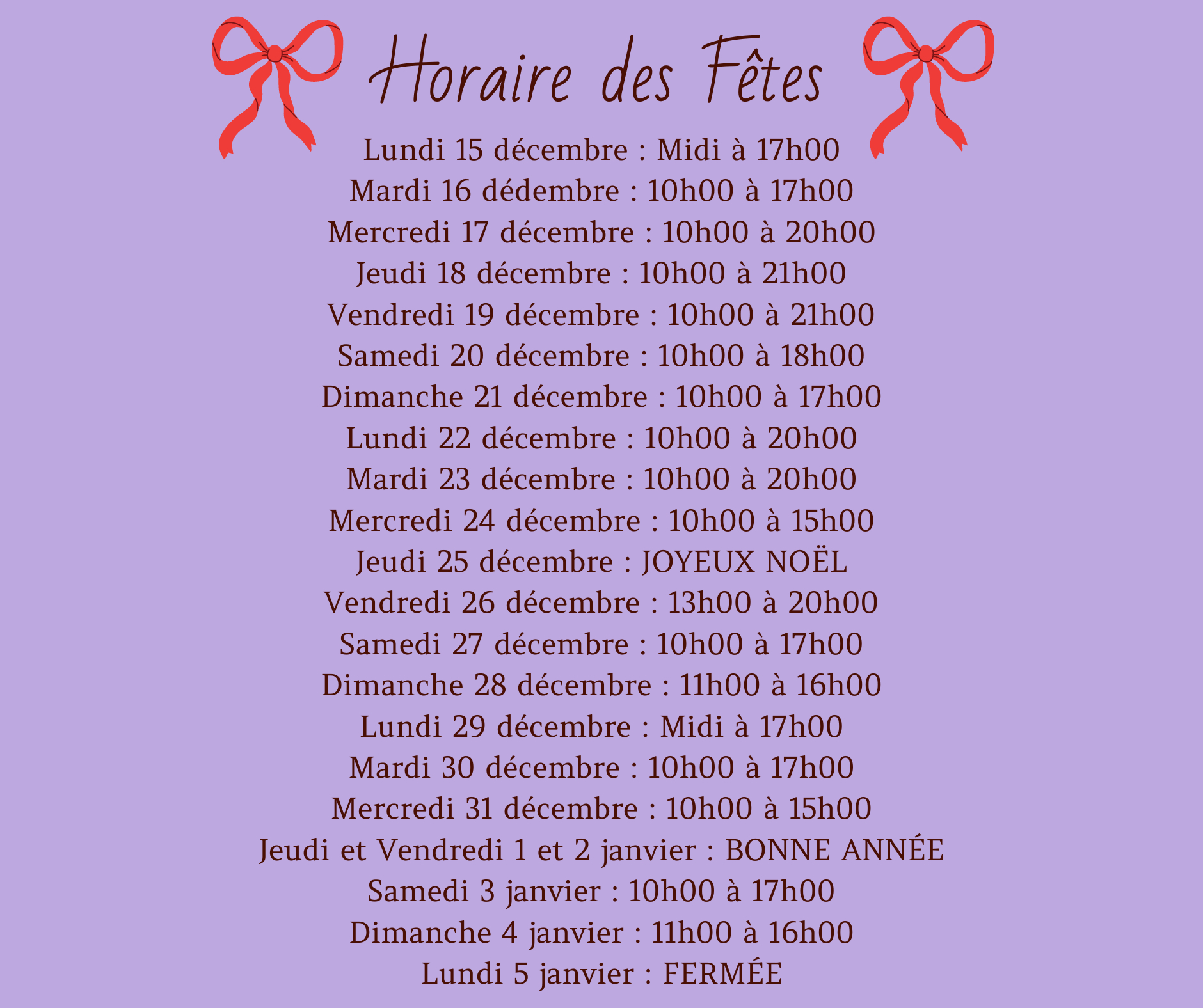 La boutique est FERMÉE les lundis